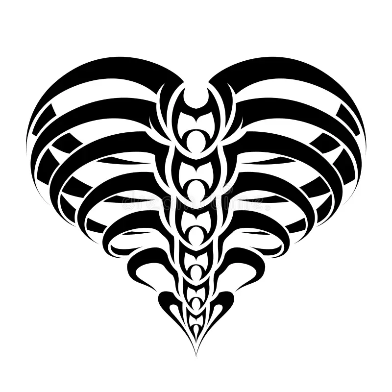 tribal abstract skeleton ribs heart tattoo design black white vector illustration depicting human sp